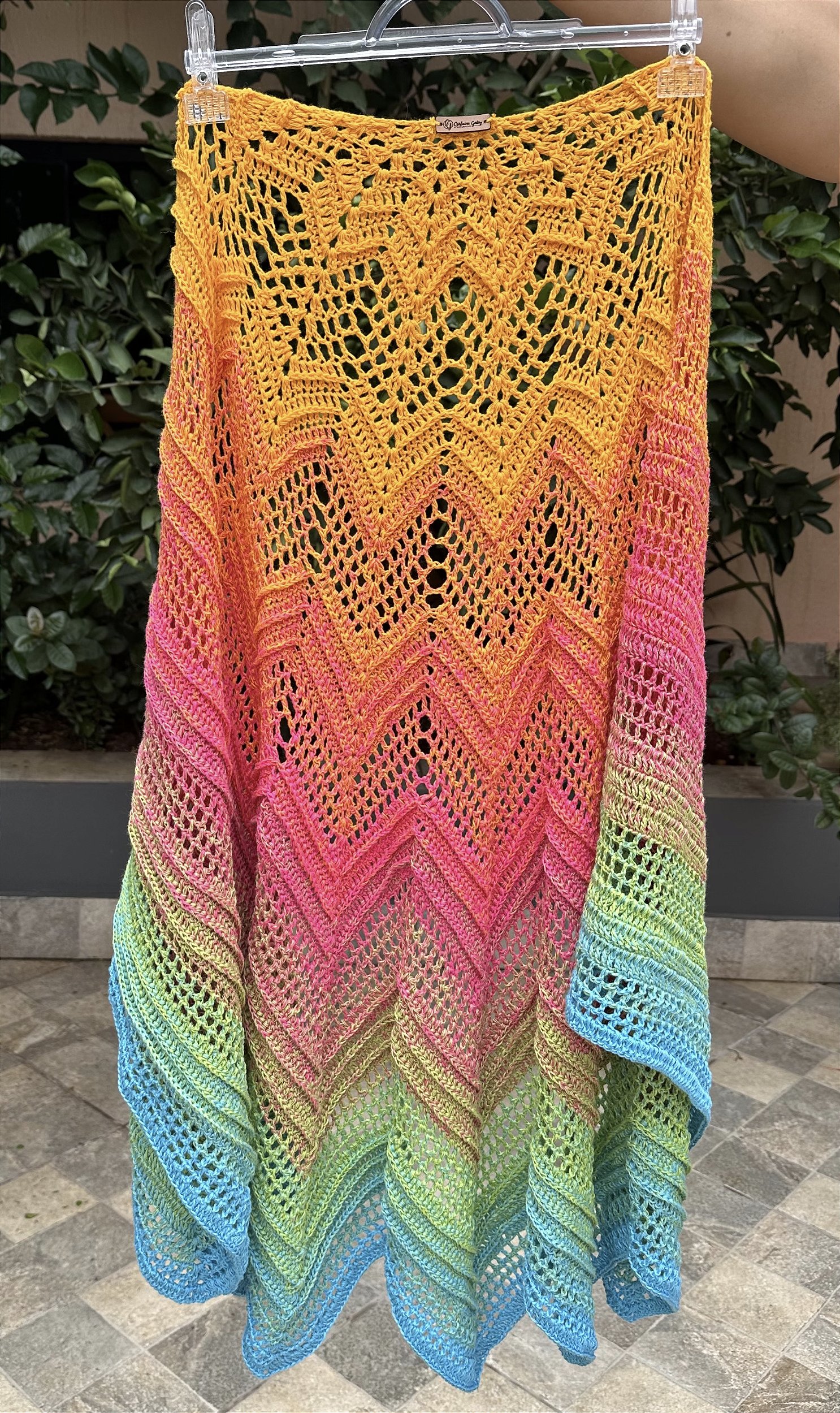 Xale Sunset confeccionado em crochê, com fio poesi design.